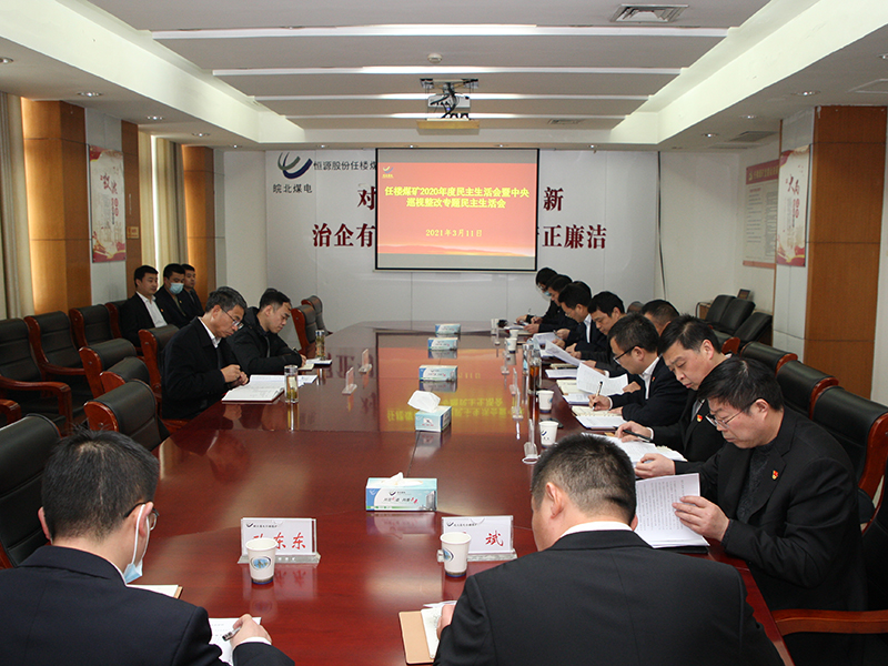 3月11下午,任楼矿在四楼会议室召开了2020年度民主生活会暨中央巡视整改专题民主生活会。公司董事长袁兆杰到会进行全程督导。该矿领导班子成员、相关部门负责人参加了会议。