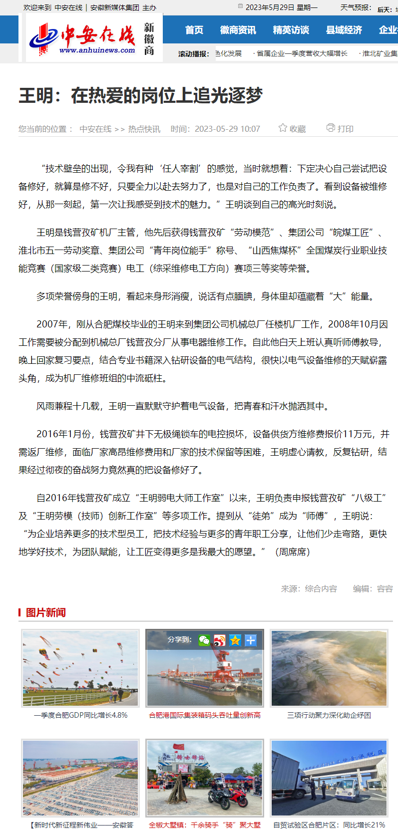 中安在线: 王明:在热爱的岗位上追光逐梦