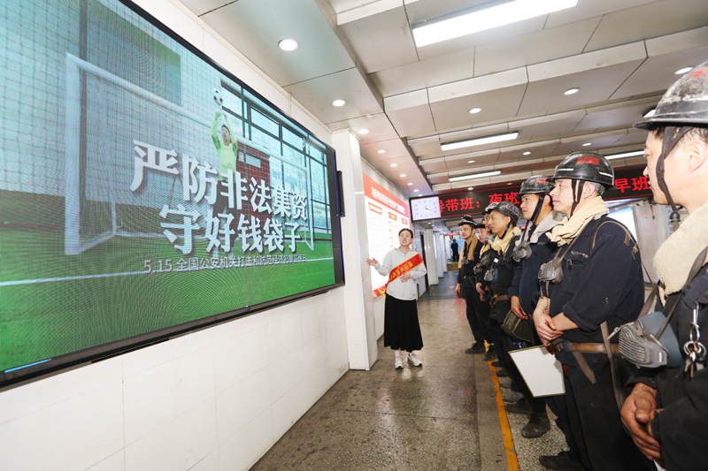 在本次防范非法集资宣传教育活动中,该矿还通过线上宣传、线下协同的方式,利用微信群、QQ群、副井口大屏幕等形式开展了防范非法集资宣传。