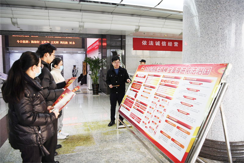 在公司机关,采用设立咨询台、发放宣传资料、悬挂宣传横幅等方式,向干部职工详细宣传了《中华人民共和国宪法》《中华人民共和国民法典》等法律法规及亮点内容。通过现场典型案例讲解,教育引导广大干部职工坚定不移地走中国特色社会主义法治道路。