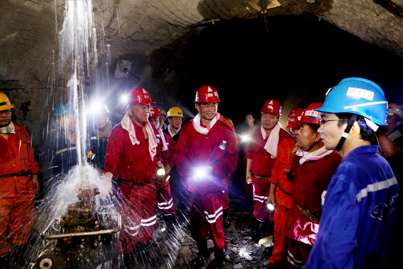 袁兆杰一行深入到该矿深部井井下-960轨道主石门、-940回风辅助石门、大泵房等地实地进行了检查,细致查看了深部井建设的安全管理、设备投入、队伍建设和工程施工进展等情况,要求该矿干群继续强化现场管理,严守安全抓住关键,全力推进深部井建设工作。